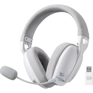 Redragon H878WG 3-Mode Wireless Blue Lighting Gaming Headset – Lightweight – 7.1 Surround Sound – 40MM Drivers – Detachable Microphone – Multi Platforms for PC, PS5/4/3, Switch, Mobile, – White