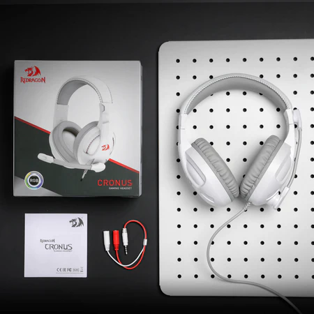 Redragon H211 Cronus White Wired Gaming Headset, Stereo Surround Sound, Noise-Canceling Microphone, Dynamic RGB Backlight, 40 mm Drivers, Over-Ear Headphones Works for PC/PS5/XBOX/NS
