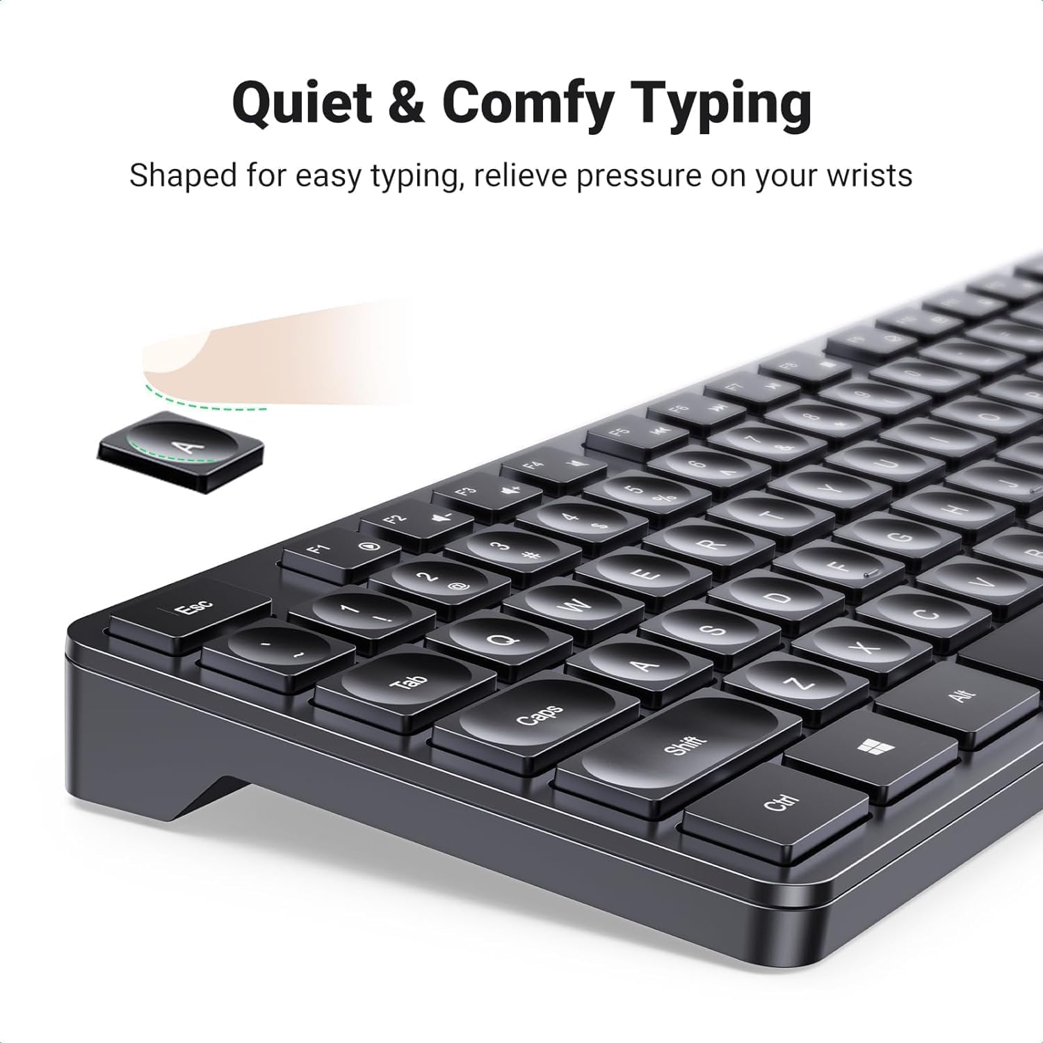 UGREEN 45248 MK006 Wireless Keyboard and Mouse Combo,2.4GHz Ergonomic Keyboard Mouse, Compact Silent Cordless Full Size Computer Keyboard, Mouse 5 DPI Levels up to 4000, for Computer, Laptop (Arabic)