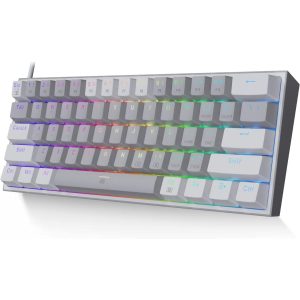 Redragon K617 Fizz 60% Wired RGB Gaming Keyboard, 61 Keys Compact Mechanical Keyboard W/Grey White Color Keycaps, Linear Red Switch, Pro Driver/Software Supported